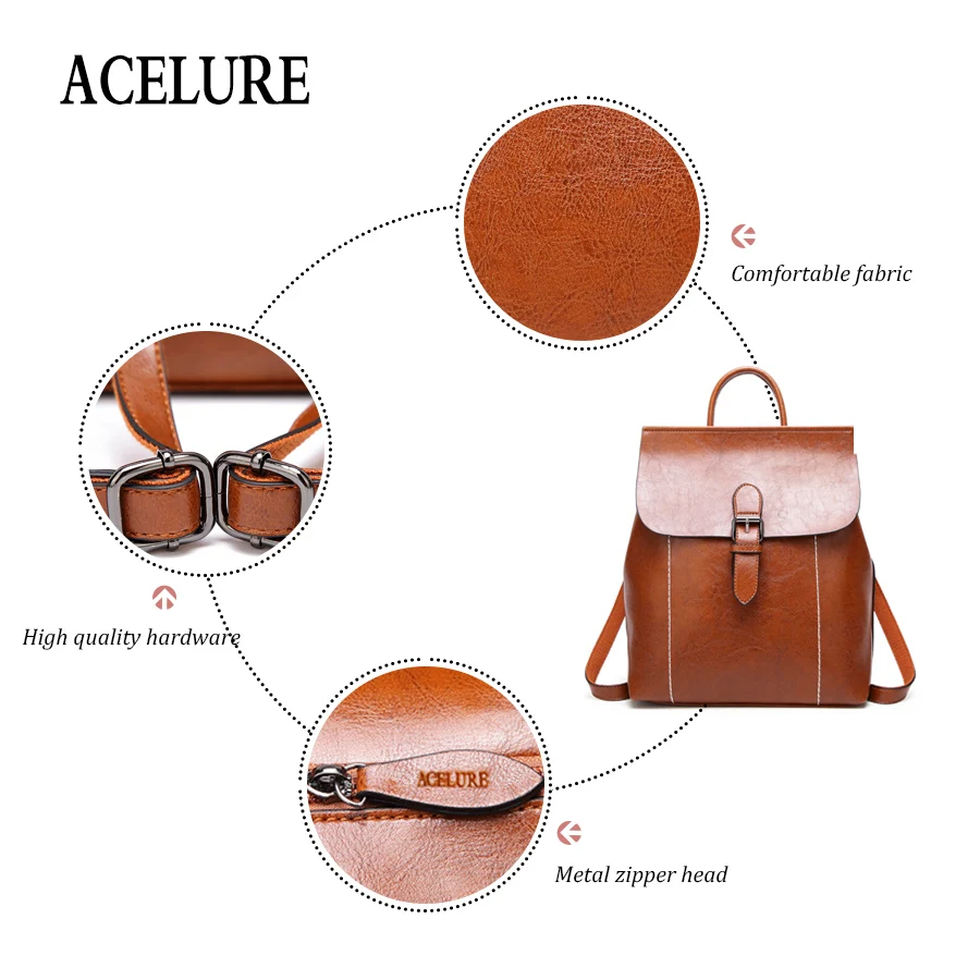 New Product ACELURE Fashion backpack women Simple Style PU Leather Backpacks For Teenage Girls School Bags Vint